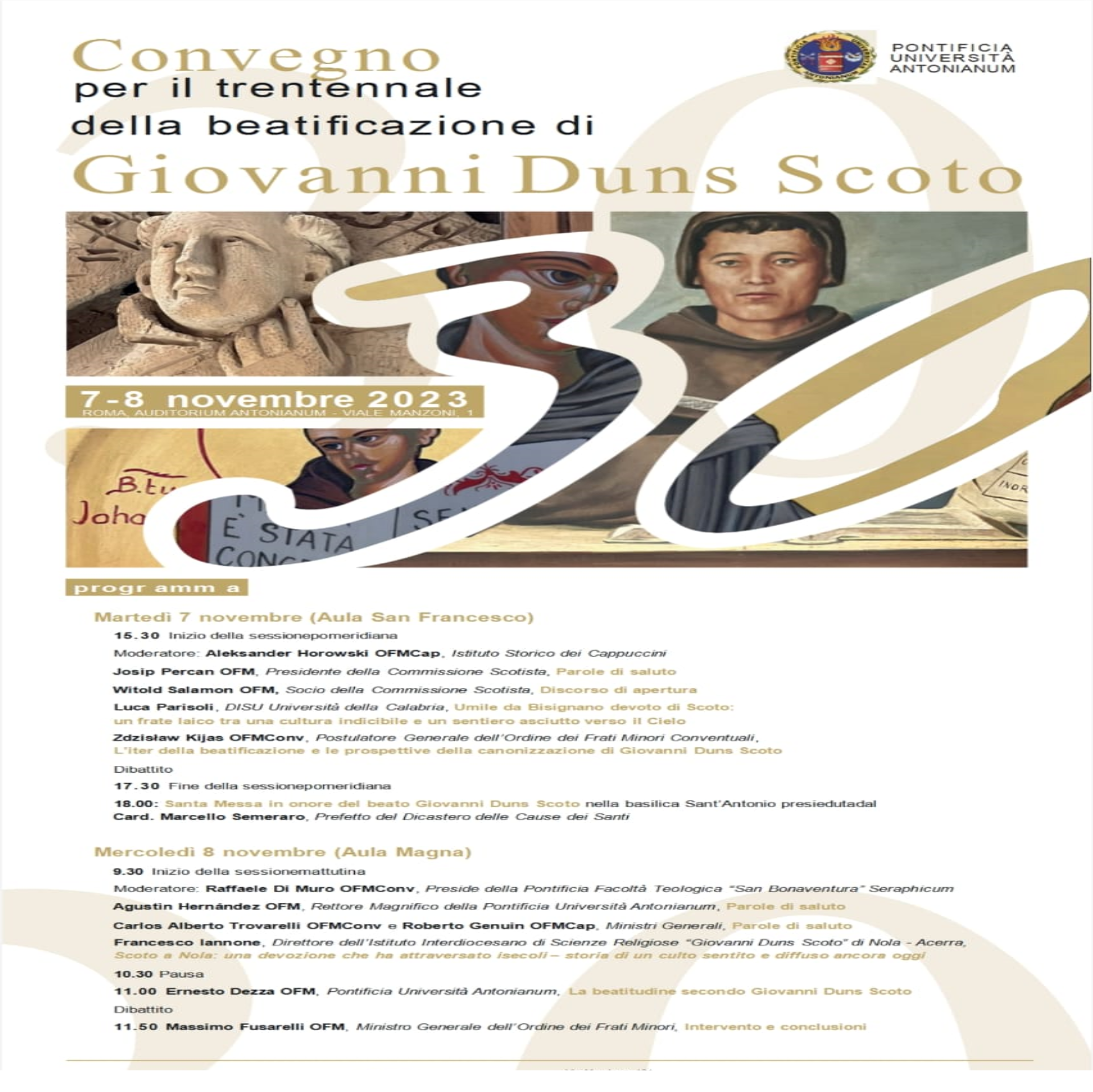 Z tej okazji, w dniach 7-8 listopada br. Papieski Uniwersytet Antonianum organizuje sesję międzynarodową. Oto jej program