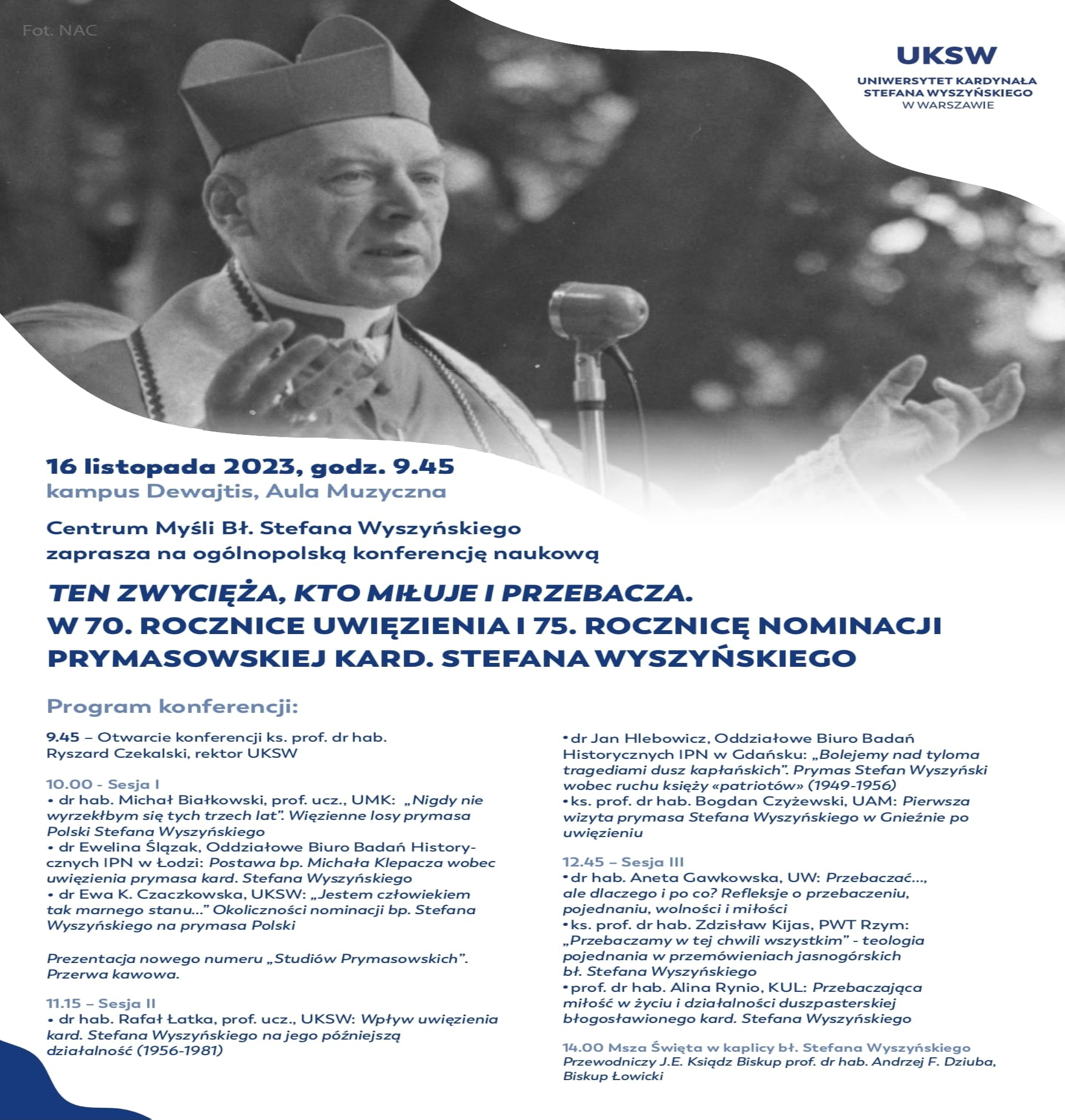 16 listopada 2023 roku odbędzie się konferencja zorganizowana z okazji 70 – lecia uwięzienia i 75 – lecia nominacji prymasowskiej kard. Stefana Wyszyńskiego. Konferencja będzie się składać z trzech sesji. Podczas III sesji, jednym z prelegentów jest o. prof. Zdzisław Józef Kijas, którego prelekcja dotyczyć będzie zagadnienia przebaczenia w życiu bł. kard. Wyszyńskiego.